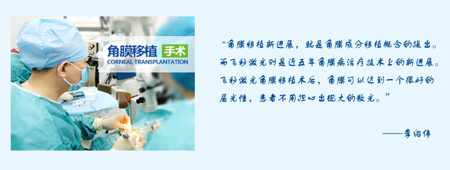 作為國內率先開展飛秒激光角膜移植和內皮移植術帶頭人、北京愛爾英智眼科醫院CEO李紹偉教授說“近十年來角膜移植新的進展,就是角膜成分移植概念的提出。而飛秒激光是近五年角膜病治療技術上新的進展。飛秒激光角膜移植術后,角膜可以達到一個很好的屈光性,患者不用擔心出現大的散光。”